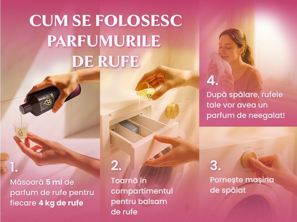 Nu puneți parfumul în tamburul mașinii de spălat sau în uscătorul de rufe. Acestea sunt destinate direct utilizării în recipientul de balsam de rufe. Nu trebuie să vă faceți griji că rufele dvs. își vor pierde parfumul după uscarea în uscător. Parfumurile Giovani® sunt rezistente la influențe externe și durabile. Rufele spălate vor mirosi chiar și după folosirea uscătorului. Temperatura optimă pentru depozitarea uleiurilor de rufe este de aproximativ 15-25 grade Celsius.