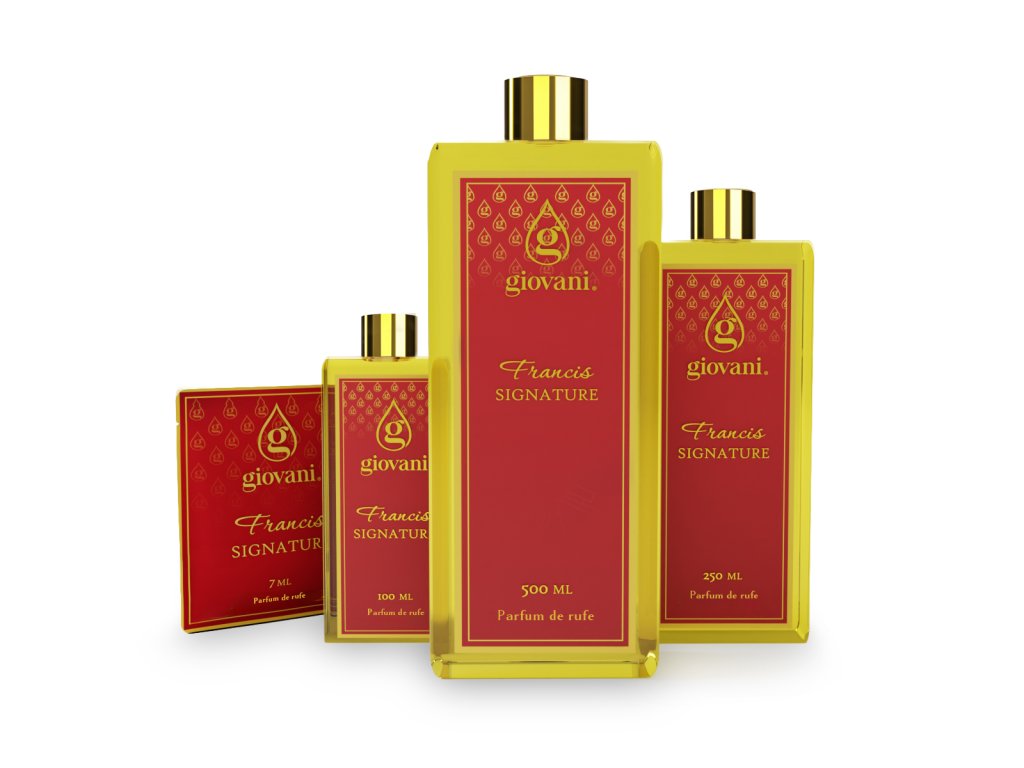 Imaginați-vă un palat împodobit în catifea aurie și roșie, cu ferestre strălucitoare de cristal care se întind pe toată lungimea pereților. Aerul este pătruns de parfumul delicat de mandarine proaspete, note delicioase de iasomie și caramel, amestecate cu o notă de esențe lemnoase. Aceasta este atmosfera pe care o va evoca Francis Signature, noul parfum de rufe exclusiv de la Giovani®.