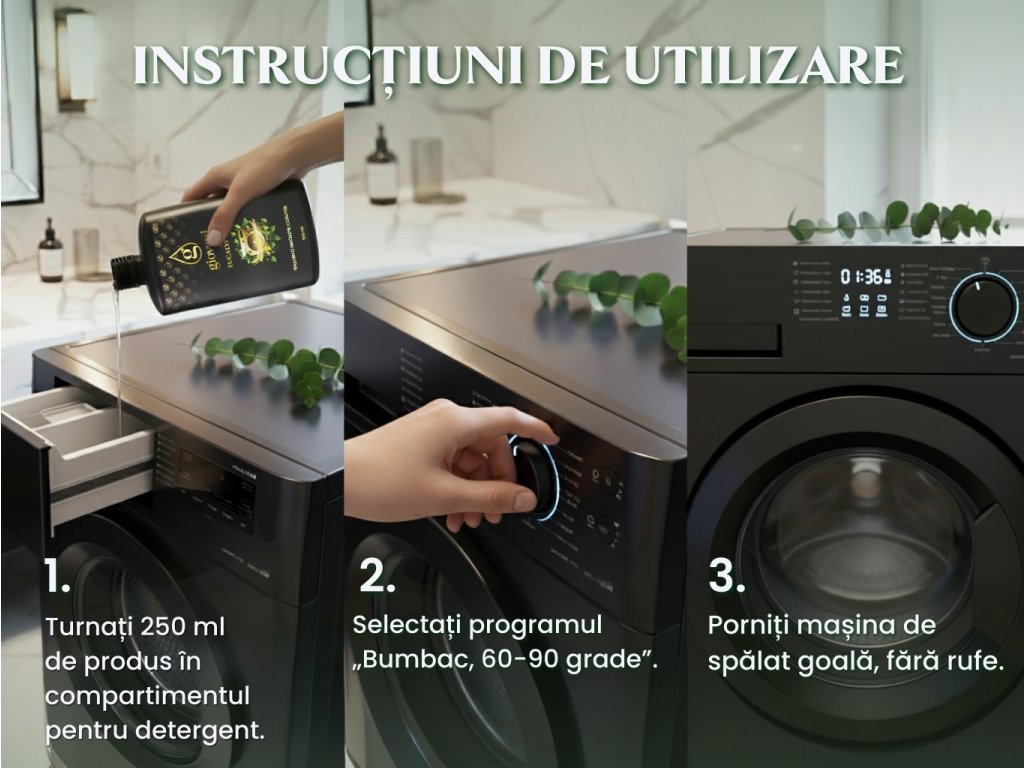 Folosește 1 dată pe lună pentru performanța optimă a mașinii de spălat.